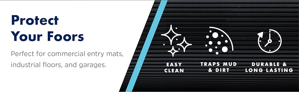 • RUBBER SCRAPER MAT: Corrugated ridges trap mud, water, sand, and dirt to keep floors mess-free and provide traction – designed for high traffic areas and able to withstand most indoor and outdoor environments
